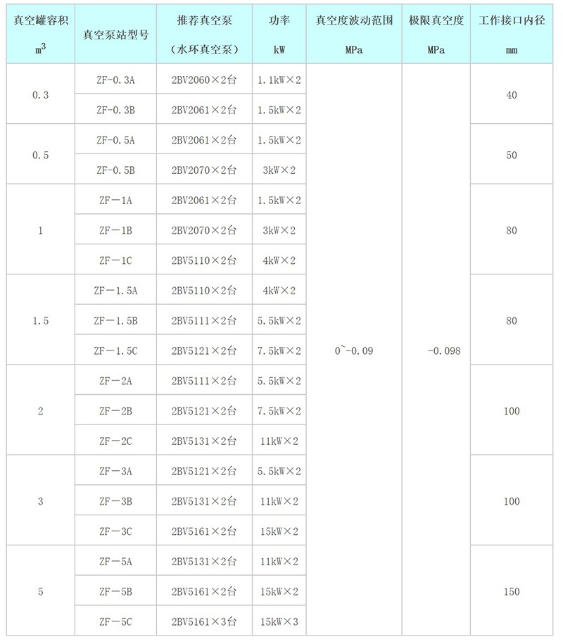 选配真空泵时,推荐优先选用高效节能的2BV系列水环式真空泵,有关技术参数请参照: